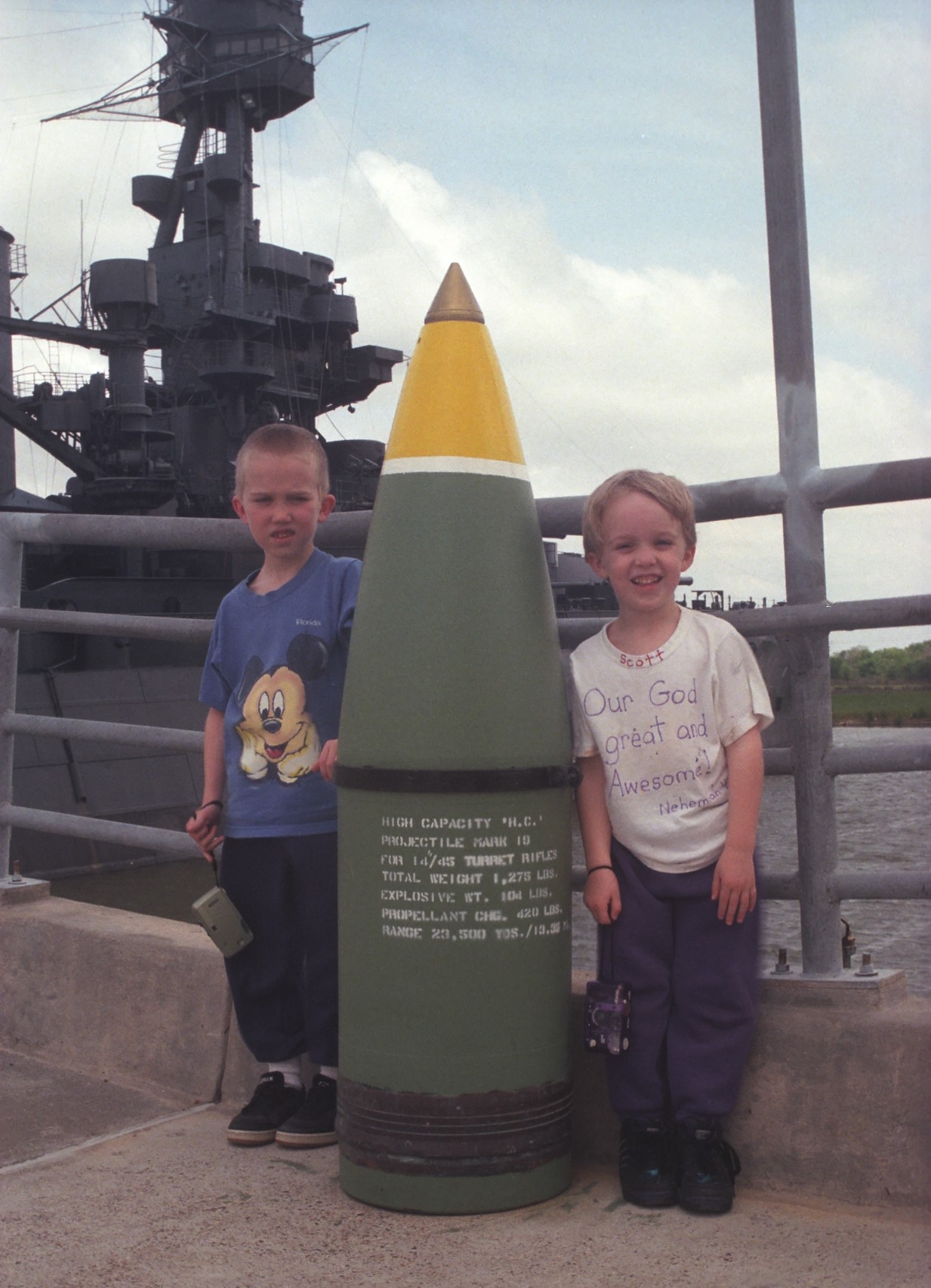 I'm not sure why I'm so much less excited than my brother to be standing near this 14" shell