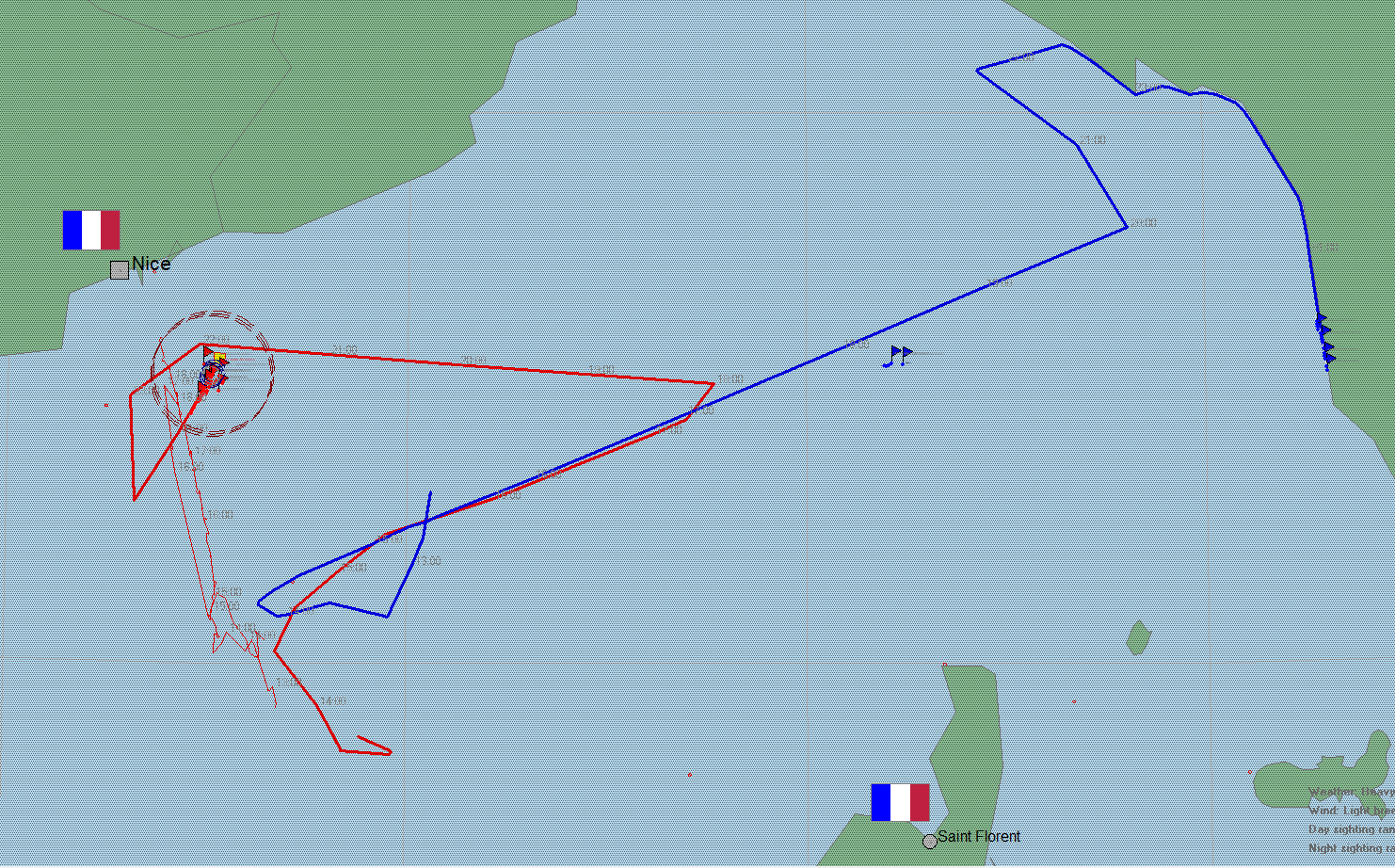 Convoy defense action off Corsica. 3 of our Bs and two from the UK are covering a convoy, along with three CA and various light units. Unfortunately, our initial course takes out of position, but we manage to get between them and the convoy before they can do any mischief. Their force has three B and 3 CA, so we attack. We close range, and manage to disable one of their CLs. Unfortunately, we don't have a speed advantage over them, and are unable to lame any of their bigger ships before darkness falls and we lose contact.