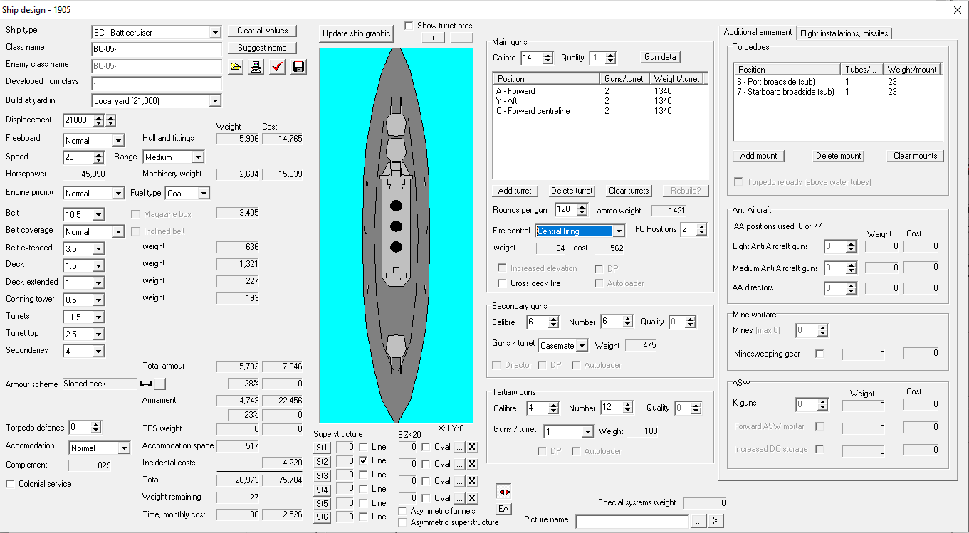 BC-05-V.png|A BC design focused on speed, with armor based on the current BC design. 26 kts is possible with the loss of a turret.