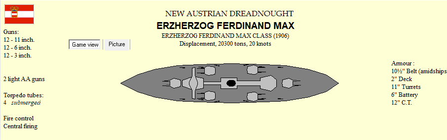 It looks like Germany has two BBs, one of which is still under construction, but what is the state of the other? Did we ever get a look at the design? The Erzherzog Ferdinand Max, despite having double the turrets of our Irresistibles, isn't that intimidating - future improvements to fire control should favour our 14/15" guns over their smaller ones.
