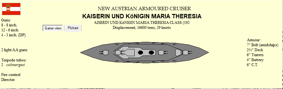 In my mind the fact that Kleber is that much smaller (and cheaper) is her greatest advantage. The better guns also give her some chance against older BCs (e.g. a faster Duquesne, or an early 12" dreadnought battlecruiser) that Maria Theresia would struggle to harm. At some point we'll have 10" +1 guns, and the funds to build cruisers the size of the Duquesnes, but until then the 11" Deutschland type is probably optimal.