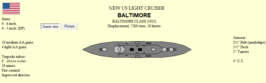 Our spies steal plans for US CL Baltimore. Italy lays down a CL, AH a CA. Germany commissions an AV, Italy a DD.