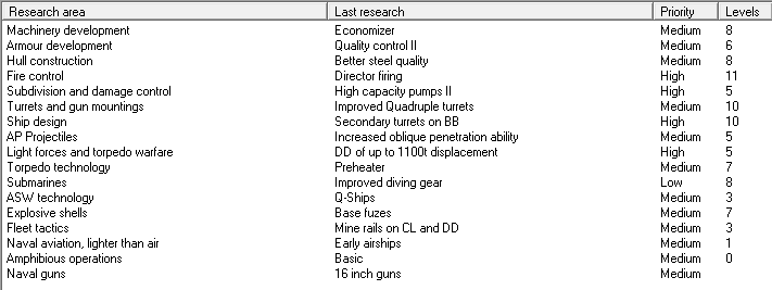 How about building another 3-5 Lansquenets, refitting some more ships, and prepare to lay down a pair of BBs/BCs when Pascal finishes. In addition to upgrading our shipyards, would it be worth tweaking our research priorities for a year to give us the best chance of getting innovations that could be applied to these ships? Cut the priority of research into AP and explosive shells, light forces and torpedoes etc, and put more into machinery, armour and guns. There might also be opportunities to buy or steal technology too.