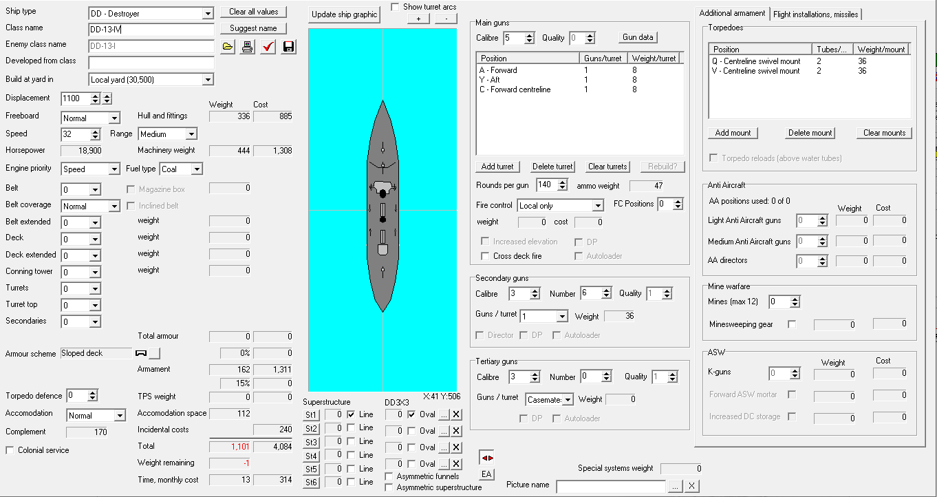 I also like the torpedo-heavy DD-13-III. Torpedo tech has come a long way since 1900.