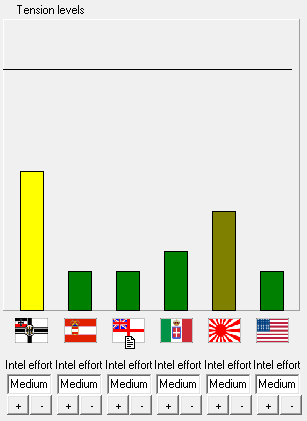 The biggest concern is what to do about Germany. We defeated them a few years ago, but tensions are creeping up again. Fortunately, our alliance with the British is holding strong, and we should be able to face them if necessary. As for what to do with the surplus, the staff has worked out a design for a 70-plane 28,000-ton carrier, which should be able to help give us a serious striking force against their fleet. Another issue to address is the potential escort shortage. Our 600 and 700 ton destroyers are overage, and it might be a good idea to build new corvettes to replace them. On the good news front, we also recently developed the technology for dive bombers, and have a design in work.