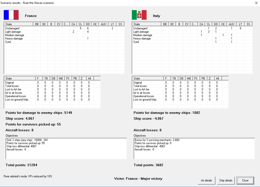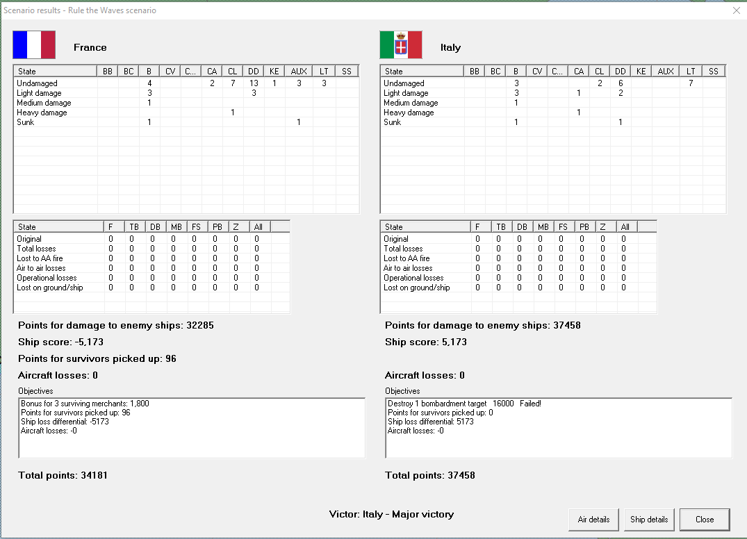 Do I understand correctly that the Italians' decision to decline a fleet engagement earned us 9630 VP, while the actual fleet action only earned 2000 VP or so for each side? Assuming these VP determine the outcome of the war, this single choice of theirs seems to have won it for us.