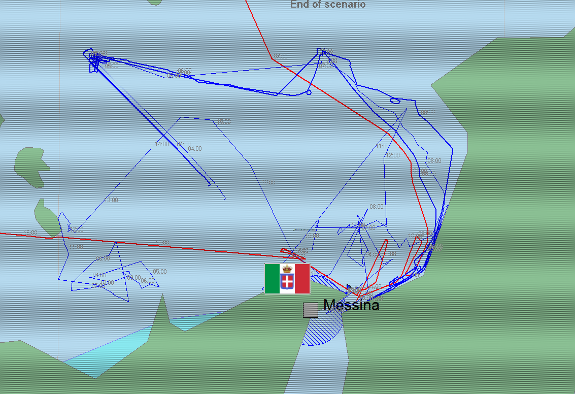 Abortive peace negotiations result in no change to situation. Breakthrough: 6' rangefinder. Raiders sink 2 ships in Med. Raid on coastal shipping in Strait of Messina with 2 CA. We encounter a pair of enemy CAs, but this time it looks like we have the upper hand in gunnery. Soon, the force was trapped off the Italian coast, and we began to pound them. A torpedo attack didn't work out, and the cruisers eventually escaped into the safety of Messina itself. We then went hunting for other ships, damaging several transports and sinking one, which, when combined with the destroyer we sunk earlier, gave us the two we needed. At this point, we withdrew to not endanger our victory. End result is a major victory. +1 Prestiege, 1480 VP vs 342 for the enemy.