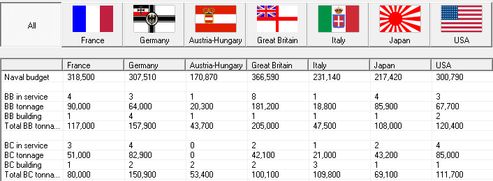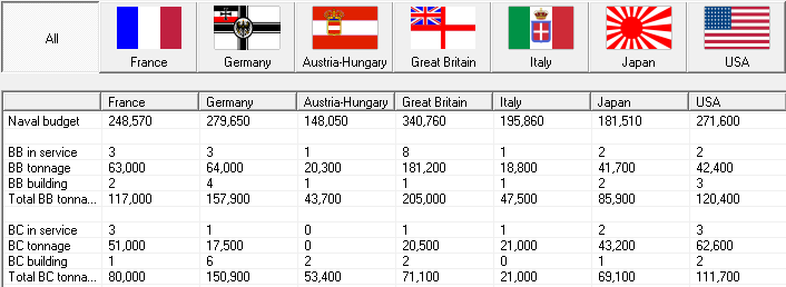 Right. A year has been played, and we somehow find ourselves on the brink of war with Italy. Again. On the plus side, our budget is way up, so we can look at new battleship designs.