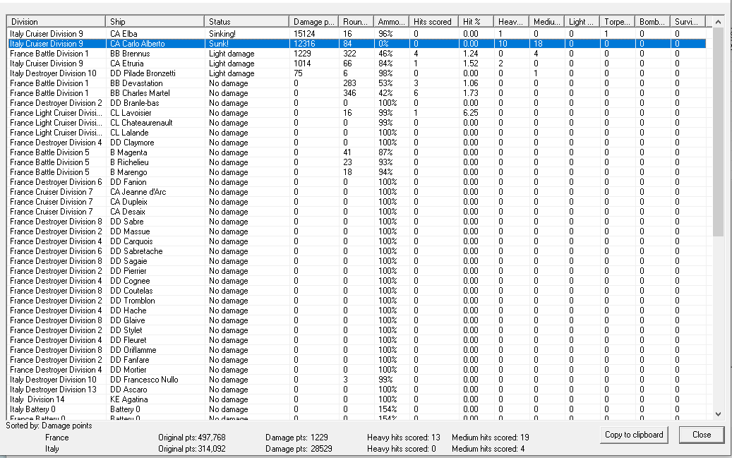 We are now at war with Italy. We won the opening engagement, although the game started a pair of DDs at point-blank range from my battleships, and Devastation ate a torpedo. She survived, but in retaliation, I'm definitely save-hacking to invade Sicily.