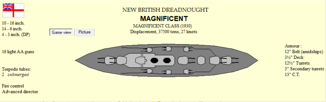 That British BB looks like some sort of super-dreadnought, or maybe something the Germans would have come up with in the 30s rather than a British design. I'd have expected them to have moved to triple turrets already.