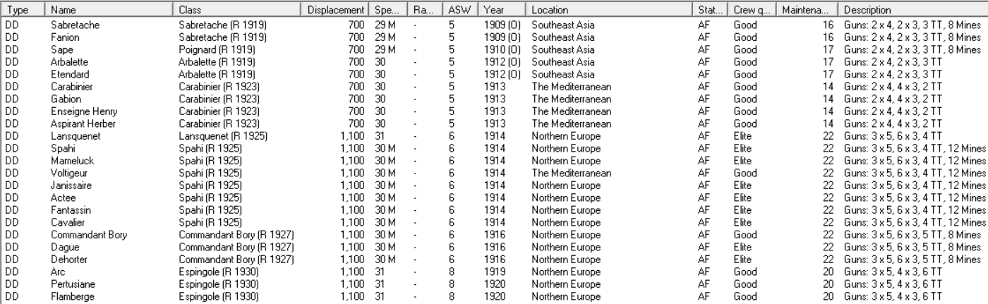CV Painleve and BBs Galouis, Indomptable, and Magenta commission. We lay down CA Desaix and begin a major upgrade to BB Ocean. All five units of the Dupetit-Thouars class are scrapped. Germany lays down 1 DD.