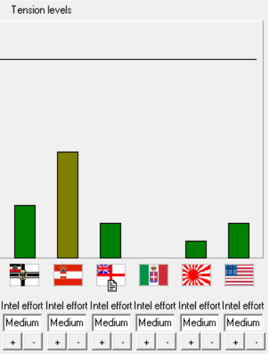 CVL Nice commissions. We cover up a gaffe by the PM by diverting suspicion to Austrian foreign policy. Breakthrough: Reduced torpedo mount weight. Medium bomber PL.128 enters service. Italy lays down 4 DD, 1 AV. AH commissions 1 AV, UK 1 CV, 1 CVL.