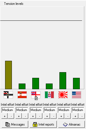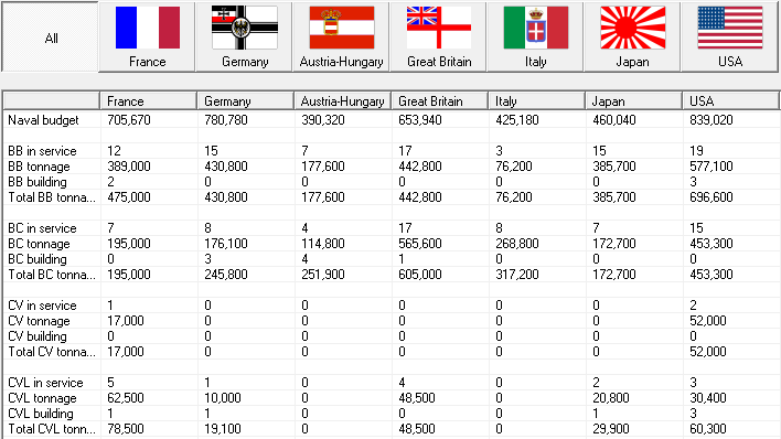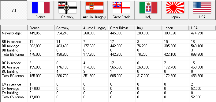 2 DD commission into the navy. A compromise peace is reached with no border changes. Germany lays down 2 DD, Italy 1 KE, Japan 1 BB. Germany and Italy each commission 1 KE, Japan 1 CL.