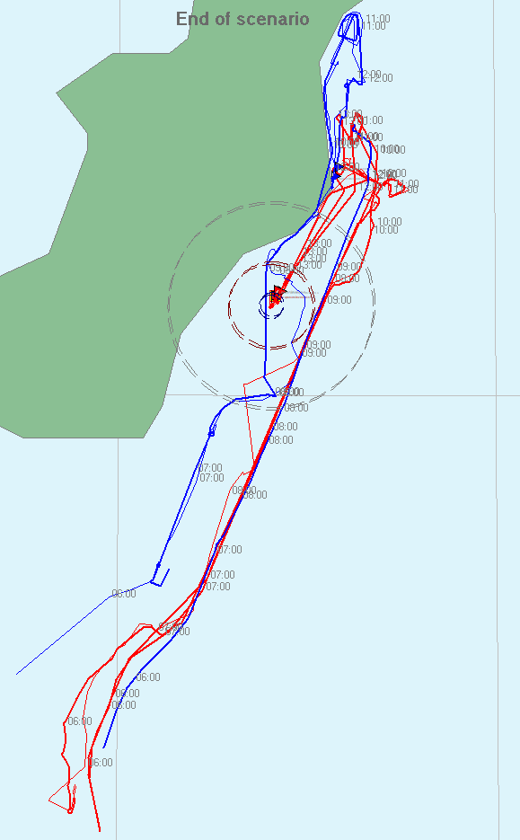 Convoy defense mission in central Med, with 2 B and 2 CA. It's almost dusk when the scenario starts, and initially it looks like nothing will happen. But then some of our destroyers blunder into them, and the heavy ships go to help. They find the enemy ships, lead by two B, and a close-range melee ensues, with us quickly getting the upper hand. The enemy battleships separate, and we proceed to pound one of them until she's disabled. The torpedoes follow after an interval long enough to make the admiral check the torpedo crews upon return to port, but she goes down quickly enough. No other ships are in sight, and the action ends. The Third Battle of Sirte is a major victory. +1 Prestige, 2190 VP for us, 197 VP for them.