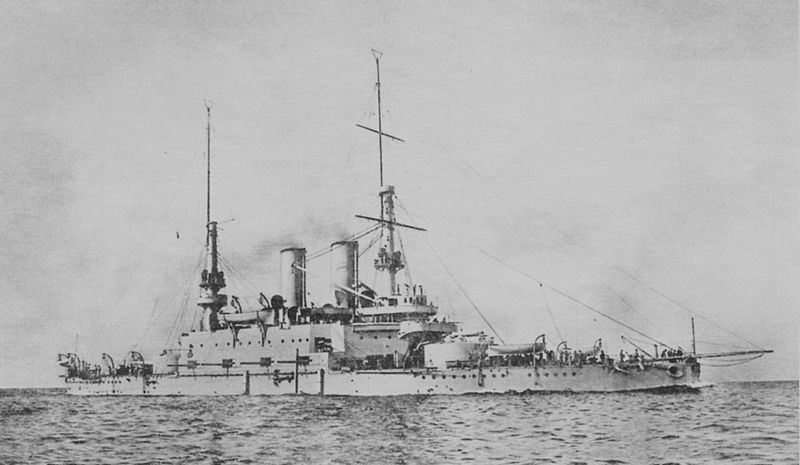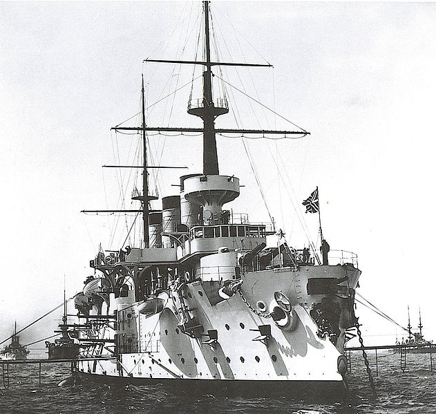 In the Black Sea, the Russians continued their tradition of building unique ships, with Kniaz Potemkin Tavricheskii. This ship, made famous by the mutiny in 1905 and the subsequent film, was actually one of their better designs. She was based on the hull of Tri Sviatitelia, adopted in haste when they realized they were about to run out of work at one of their shipyards. However, a focsle was added, giving vastly improved seakeeping and better habitability. The 12"/40 guns had issues, firing at half the rate of other Russian guns, which were already slow-firing by international standards. Despite this, the ship, renamed Panteleimon after the mutiny, gave good service.