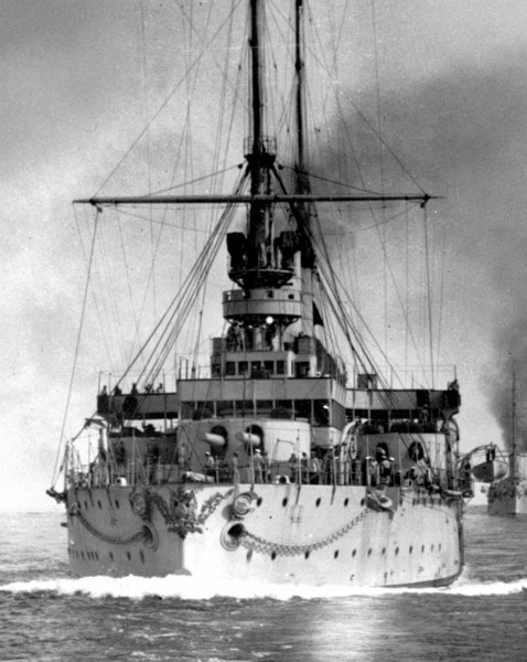 Peresvet with some of the torpedo-defense guns visible on the ship's side