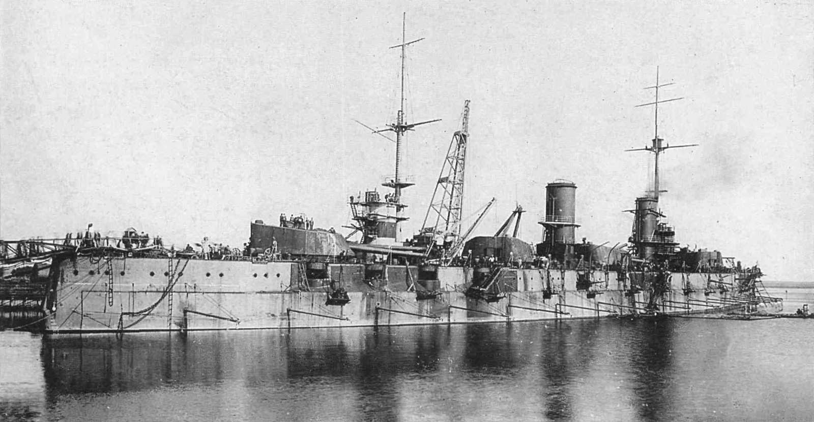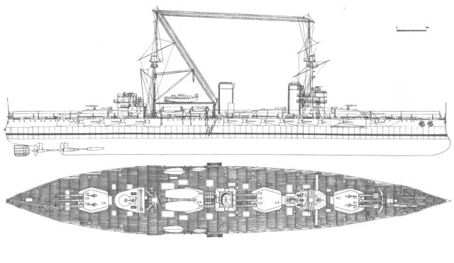 In the meantime, the Turkish navy continued to expand, and the Russians decided to buy a fourth dreadnought for the Black Sea Fleet at the end of 1913. While 14" guns were considered, Russian doctrine required 12 guns, which would have meant a much larger ship. The urgency of the requirement ruled this out, and a design based on the Imperatritsa Mariia was selected. Machinery and armament were essentially identical, but the resulting ship, Imperator Nikolai I, was about 20% larger, more heavily armored and with much greater range.5 Industrial limitations meant the belt could only be increased from 10.3" to 10.6", but the longitudinal bulkhead intended to catch splinters was increased from 2" to 3". Improved technology allowed this bulkhead to be cemented, increasing effectiveness by another 40%. The ship was laid down in May 1914, just in time for the outbreak of war. More urgent projects delayed the planned October 1915 launch date by a year, still a fairly impressive performance for a Russian shipyard. Revolutionary unrest reduced construction to a crawl shortly thereafter, and in October 1917, the renamed Demokratiia was suspended. She remained afloat for another decade until the Soviets finally scrapped her.