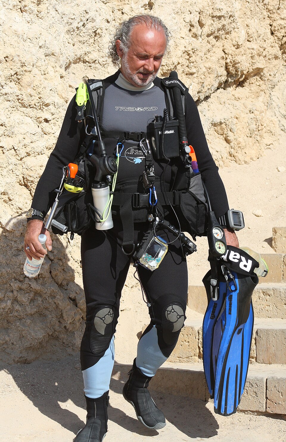 The most important, at least in temperate climates, is a wetsuit. Off the California coast, water temperatures are typically around 15°C, and while you can survive as long as two hours at those temperatures, really you’re going to be back on the dive boat wrapped in towels and swearing off diving forever long before you’re worrying about things like air supply and decompression sickness. In tropical waters, you could go without a wetsuit, but see above regarding sharp, jagged, venomous things. You may from time to time see bikini-clad models posing for underwater shots in e.g. advertisements for dive gear, but on an actual dive pretty much everyone will be wearing some sort of full-body protection.