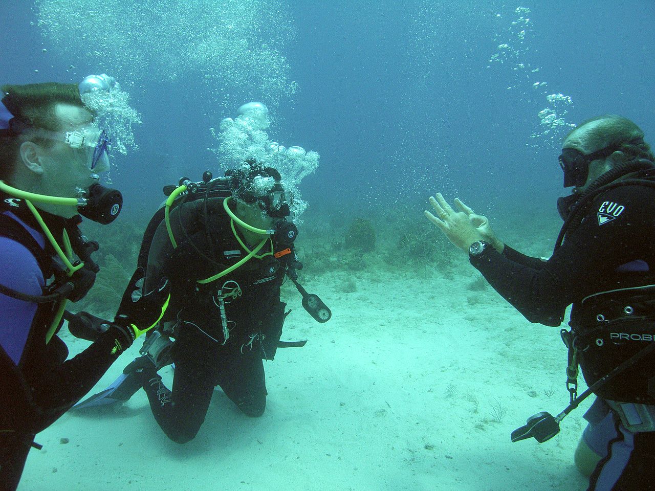Necessary skills, assuming you already know how to swim, start with the aforementioned Stupid Diver Tricks and how to avoid them instinctively. Then you need to learn how to set up, take down, and maintain your gear. How to plan a dive, including your estimated air and decompression limits even if you are going to use a computer. How to safely enter and exit the water, from a beach or a boat, while wearing flippers and up to a hundred pounds of clumsy gear. General familiarity with the underwater environment, which is freaky weird and unnatural until you get used to it. Assorted emergency procedures – “ditch your gear and float to the surface, blowing bubbles all the way to make sure you don’t accidentally hold your breath” will almost always work within the limits of basic recreational diving, but you really want a suite of less drastic options like “ask your buddy to share his spare regulator”. Which, incidentally, means learning a basic set of hand signals. A bit of underwater navigation, but you won’t be going very far at first. Some miscellaneous health and safety stuff.