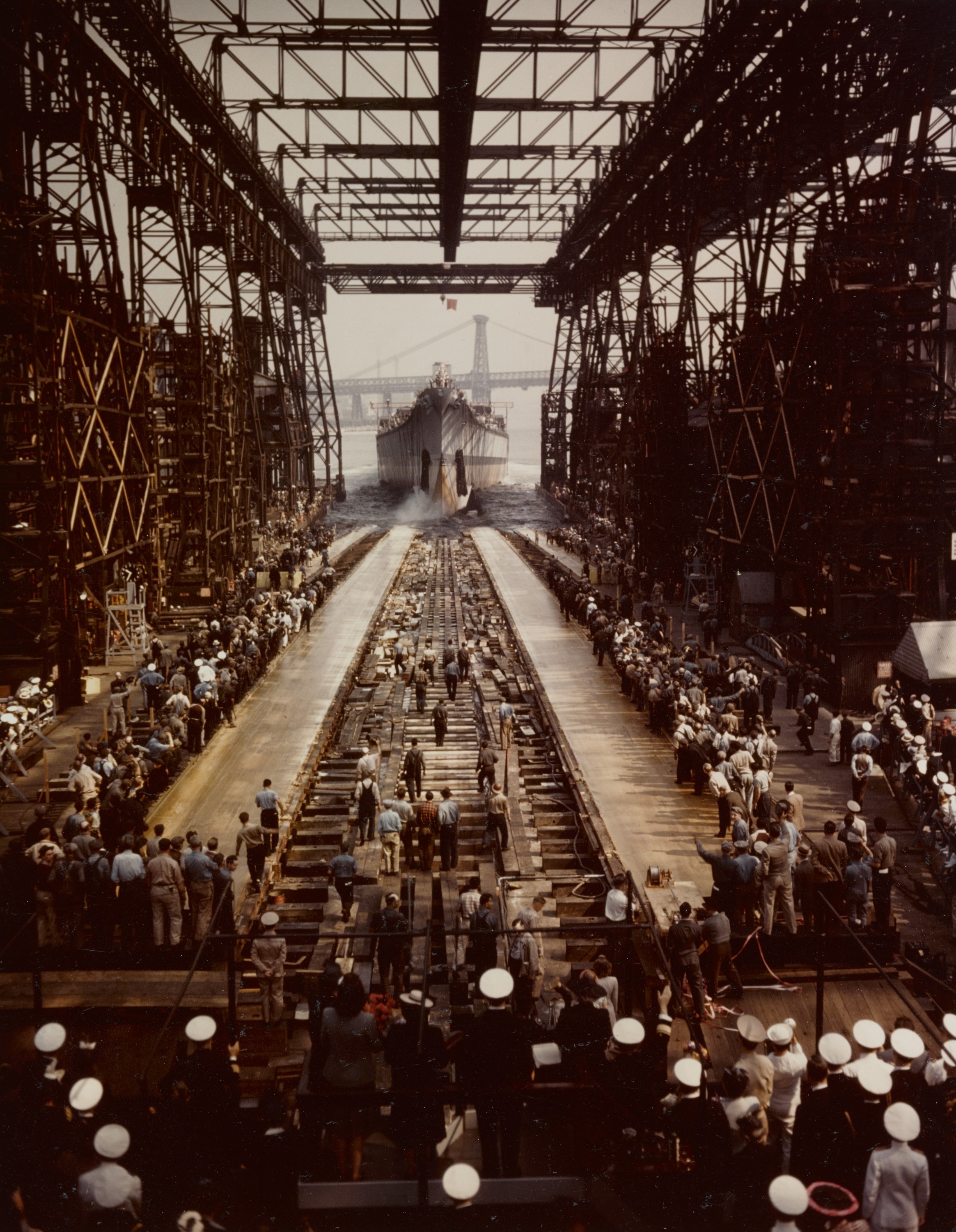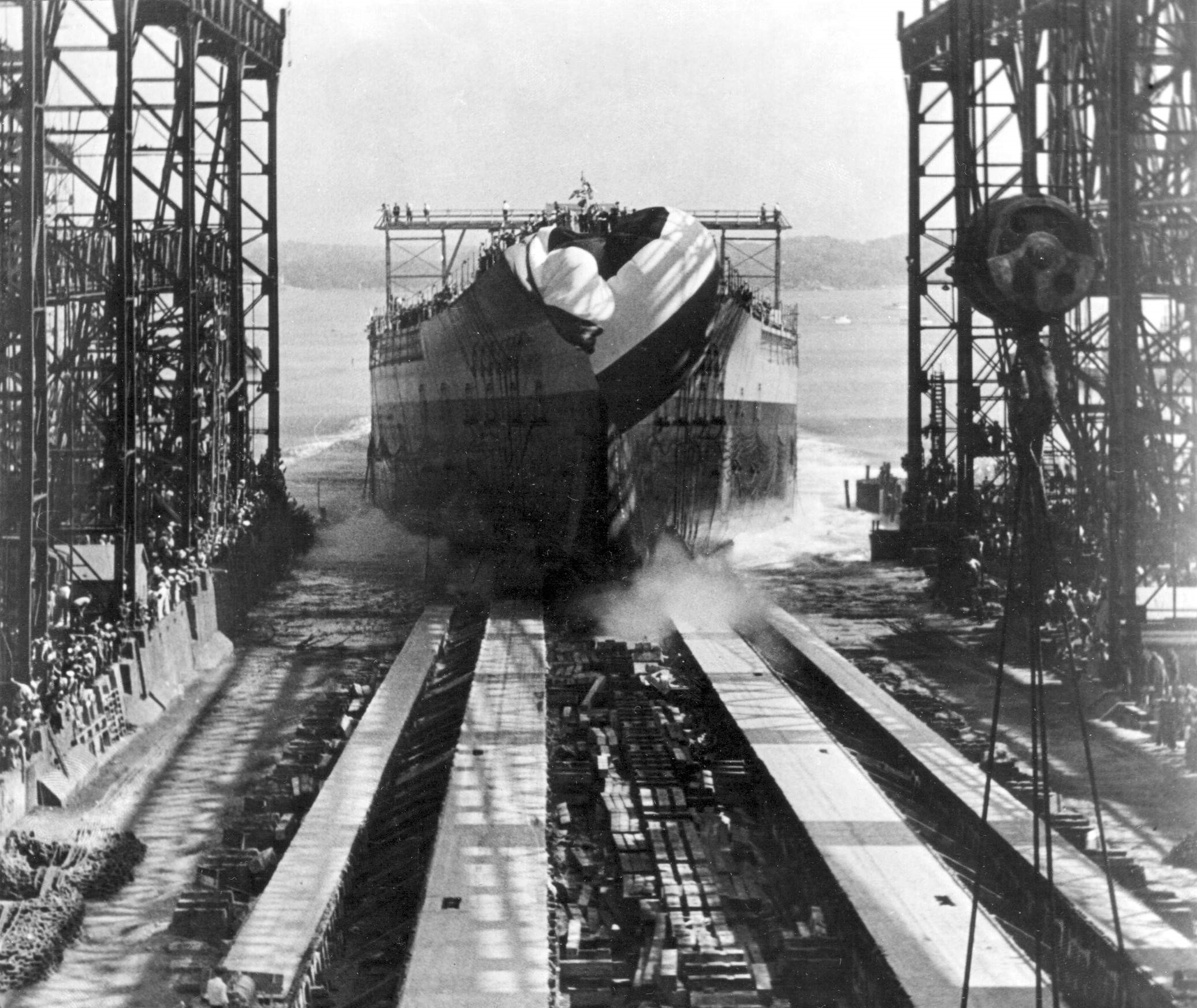 Once a battleship's hull had been assembled, the builder was faced with the task of getting it into the water. Launch was the most difficult and involved part of building a ship, as tens of thousands of tons of steel had to be slid down into the water without damage to itself or to the surroundings.1