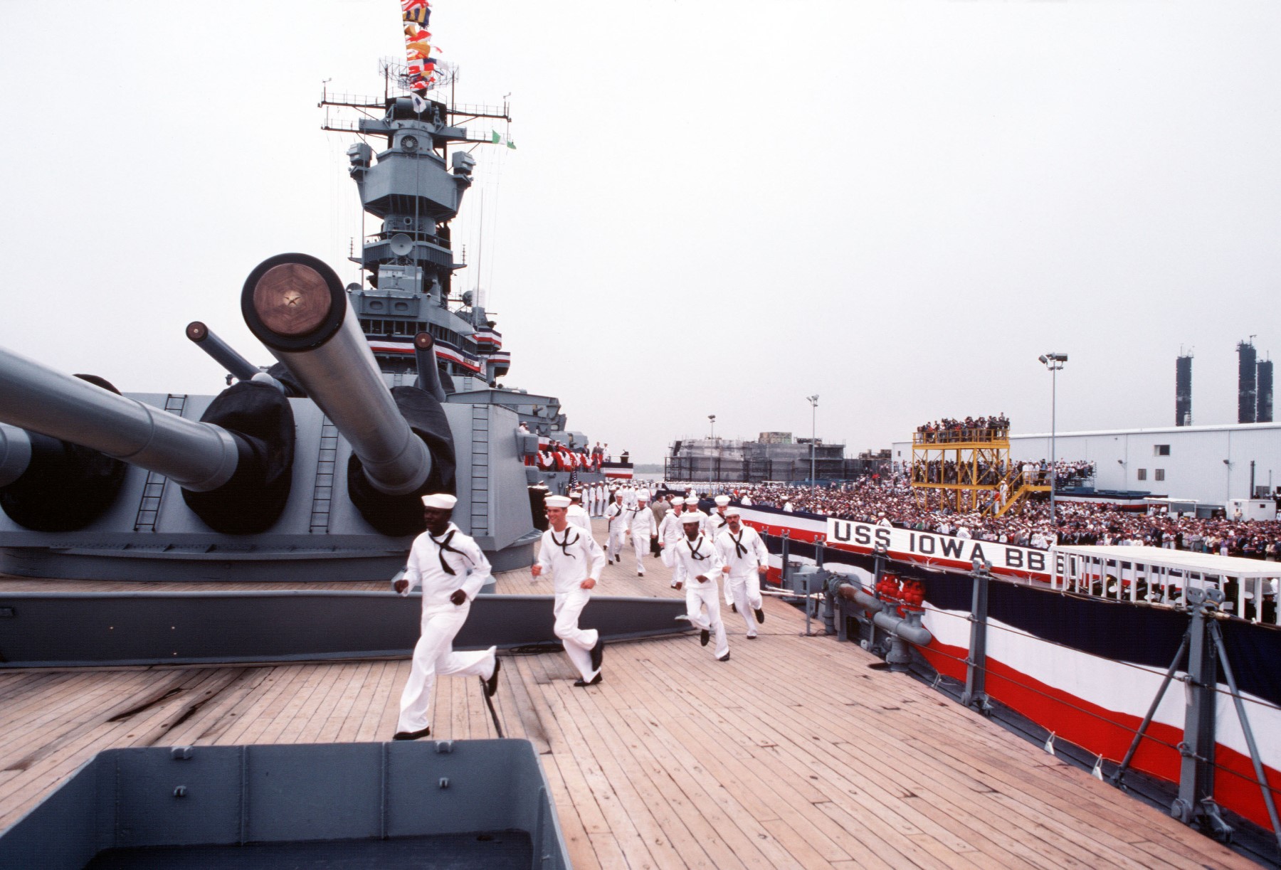 Finally, the big day came, the final payment, 5% or so, was made, and the title of the ship officially passed from the shipbuilder to an Admiral or other senior officer for a short period. This placed it in a sort of legal limbo, so the formal commissioning followed swiftly, as the ship's Captain took official responsibility for the ship. The officers and crew fell out on the stern of the ship, resplendent in their dress uniforms, and the Chaplain gave the invocation. The Admiral ordered the prospective commanding officer to commission the ship, and the order was passed to the crew. The national ensign, commissioning pennant and jack were hoisted, and the first watch was sent running to their stations. The ship was now officially commissioned, and short speeches from the Captain and Admiral, along with any visiting dignitaries, followed. If a presentation silver service was being given to the ship, usually by the state the ship was named after, it would be received at this point. The ceremony concluded with the benediction, and was usually followed by a reception.5
