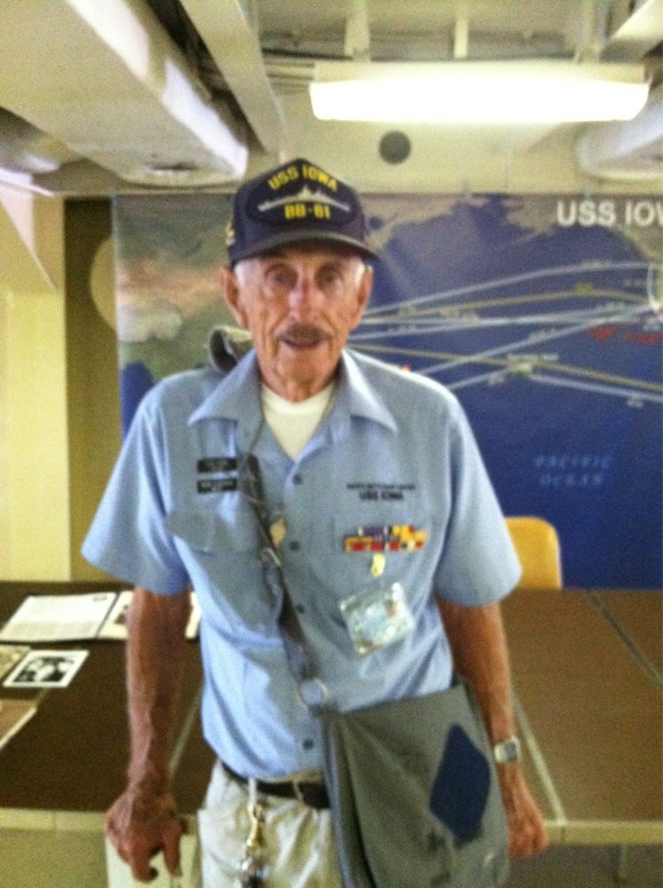 I knew one of those men. Bob DeSpain was a 17-year old gunner on the Hoel who volunteered at the Iowa before he passed away last year. I got goosebumps every time I met him. He would sit in the wardroom and talk to guests. He sold copies of James Hornfisher's book, Last Stand of the Tin Can Sailors. He'd sign by his picture. I have a copy, and it's one of my most treasured books. He was the nicest man, and I always made sure to ask if he needed help getting set up or getting more books from the store. He once told me that there was so much blood on the deck that when he got knocked down, he thought he'd been hit. But usually, his stories were of lighter things. He told me about flirting with the nurses in the hospital after they fished him out of the Pacific. We talked about Farragut Naval Training Station in Idaho, where he'd done basic training, and which I'd visited. I am still amazed that I had the honor to get to know him. We all miss him.