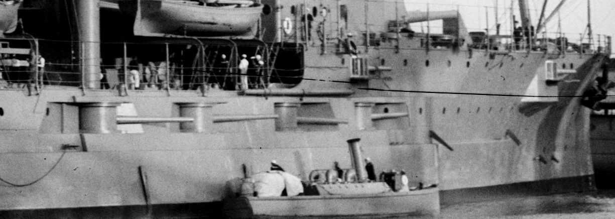Casemates on USS Utah. Note the sponsoned gun forward.