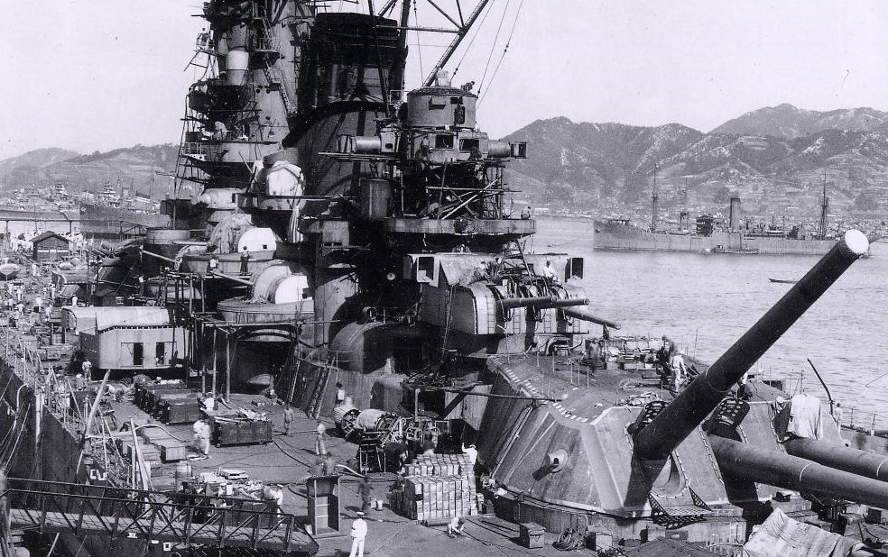 Yamato under construction. Note the triple 6" turret above the main 18" turret