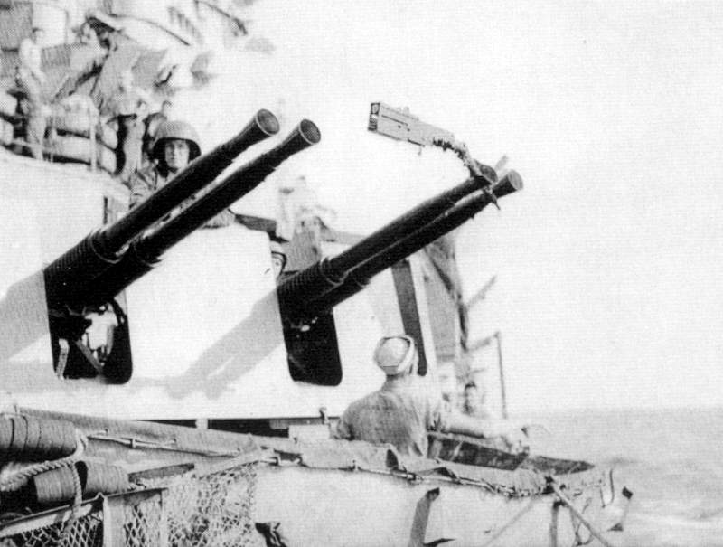 One of the kamikaze's guns, impaled on a 40mm barrel
