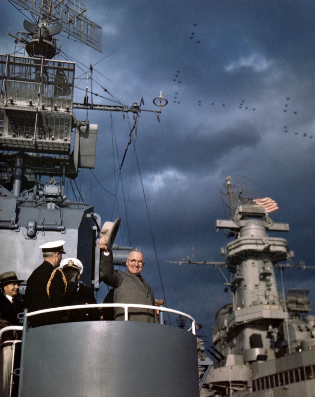 Missouri spent the next two years as a training ship, taking midshipmen on cruises to the Caribbean or to Europe. When Iowa was decommissioned in March of 1949, Missouri was the only battleship remaining in service, and Truman explicitly promised that as long as he was President, she would not be retired. She was the perfect vessel for training future officers, with lots of room and only a skeleton crew. But the beginning of 1950 brought disaster to the ship, which we'll cover next time.