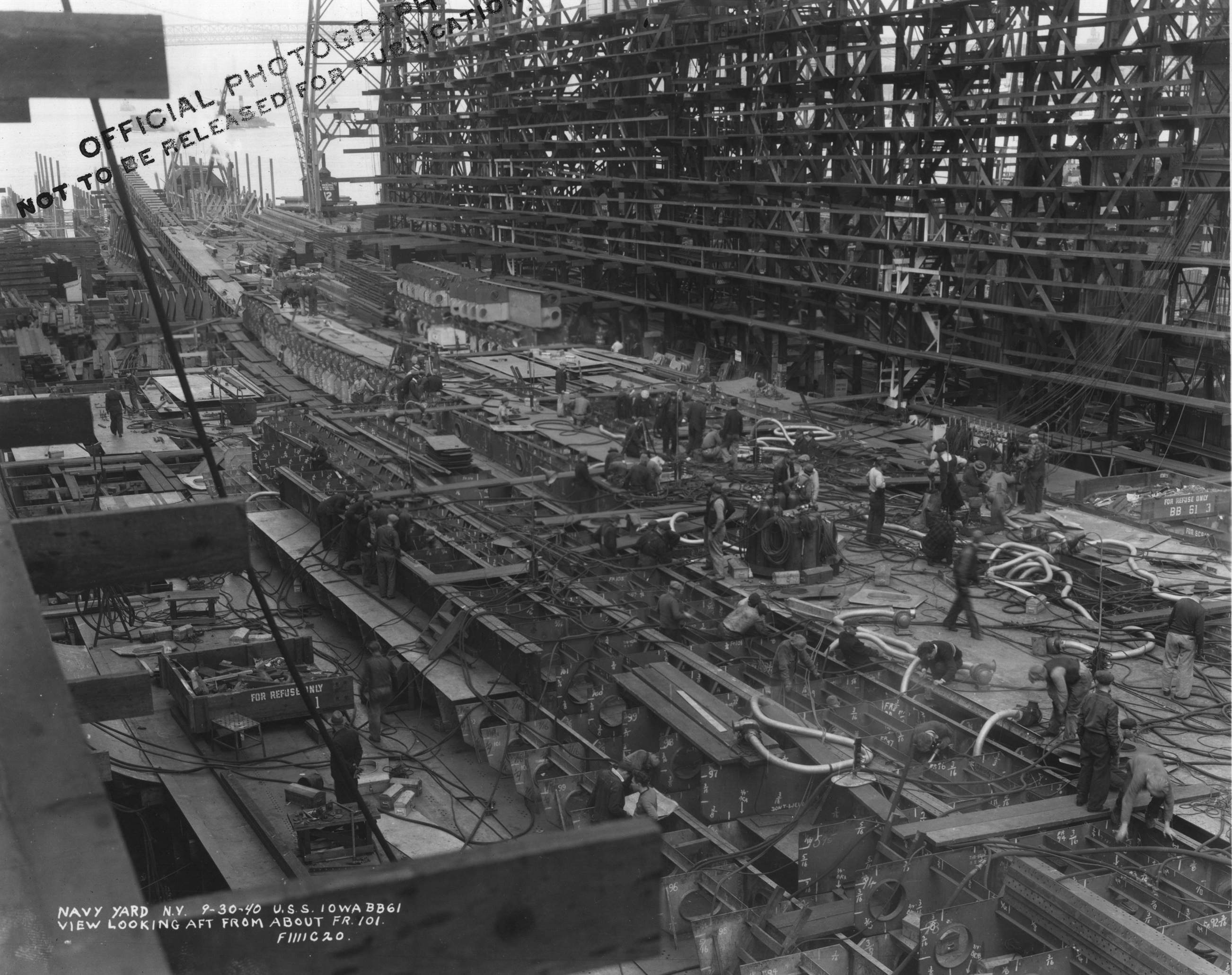 Iowa's structure being assembled at Brooklyn Navy Yard