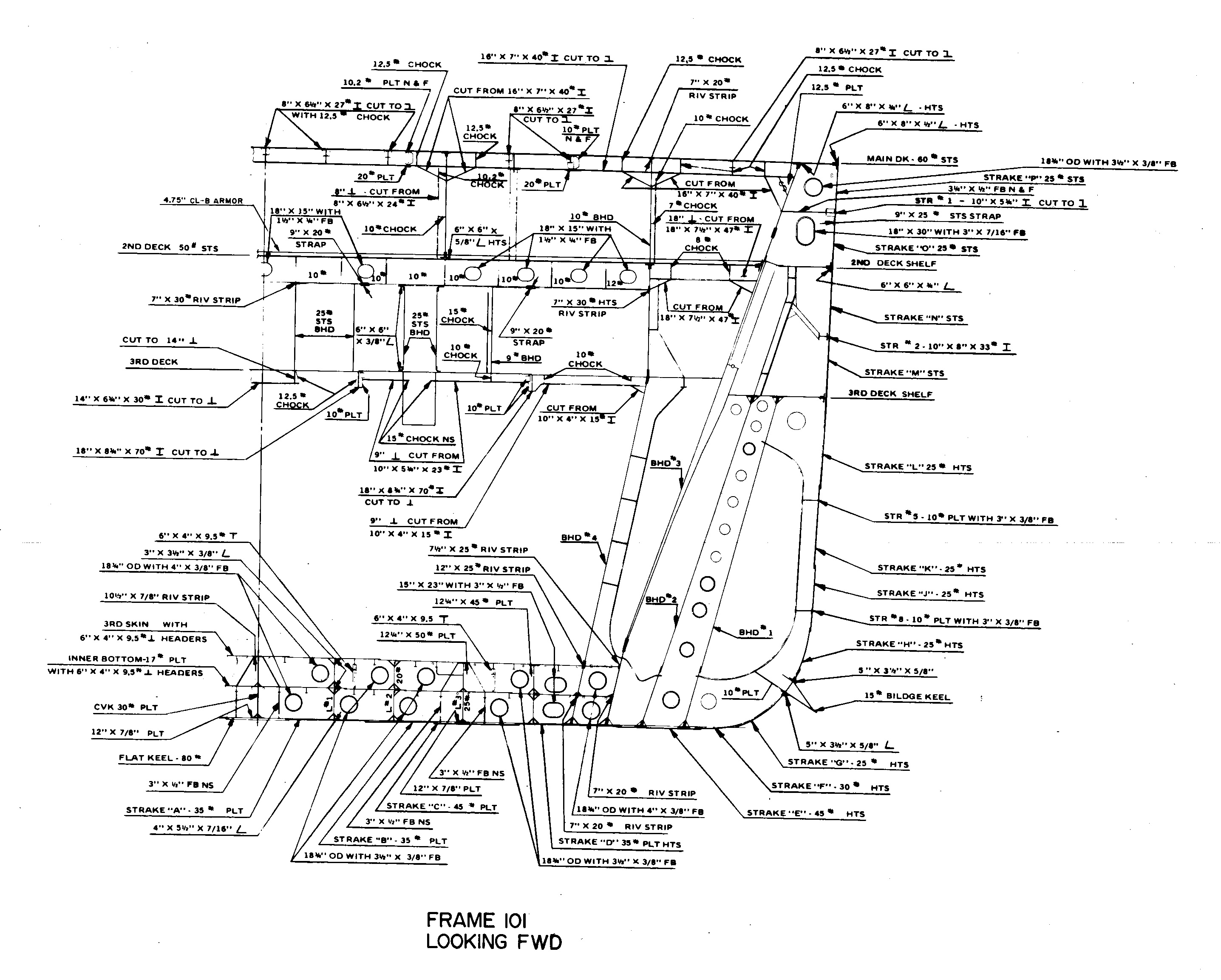 A cross-section of Iowa's hull at Frame 101