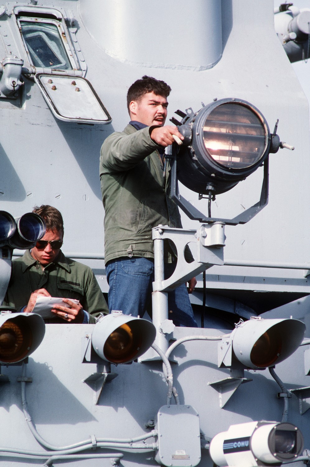 2 Night signalling did become more complicated later on. By Nelson's day, it was a combination of guns, flares, and lights in specific arrangements on frames. In fog, only sound signals were used, including bells and horns as well as guns. ⇑