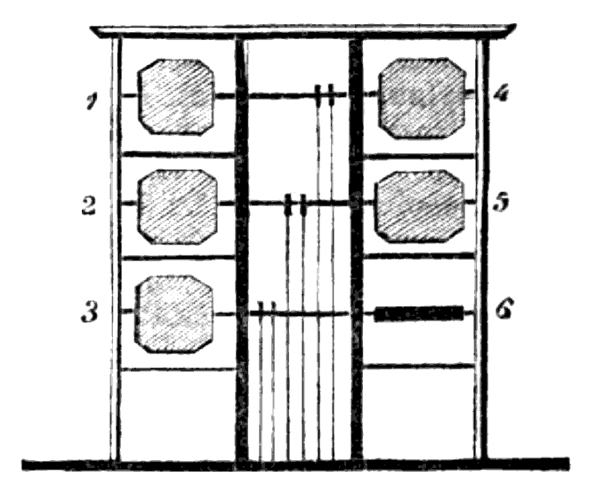 Flag signalling was not the only form of communications that Home Popham worked on, either. During the Napoleonic Wars, the French invented the semaphore telegraph, a system for very quickly relaying messages between stations on land. The Admiralty adopted a similar system, developed by Bishop George Murray, to transmit messages between the Admiralty and the major fleet bases. Each station consisted of six shutters that could be rotated to the horizontal or vertical position, allowing 64 different combinations. This system passed a message over the 69 miles from London to Deal in Kent in just 60 seconds. With the end of the Napoleonic Wars, the Admiralty sought a better system, and selected the one devised by Popham, which consisted of a tall pole with two rotating arms, one at the top and one in the middle. His system remained in service until 1847, when the electric telegraph replaced it.