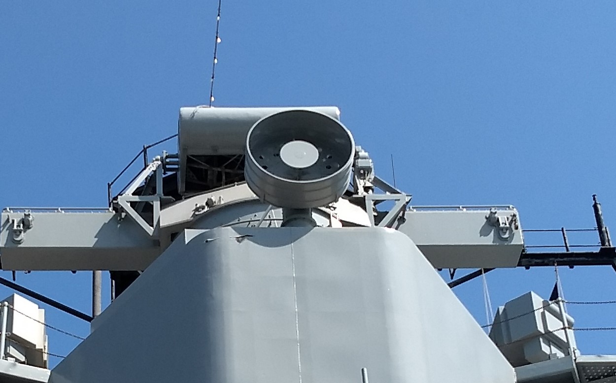 The satellite antenna aboard Iowa, mounted on the air-defense level9