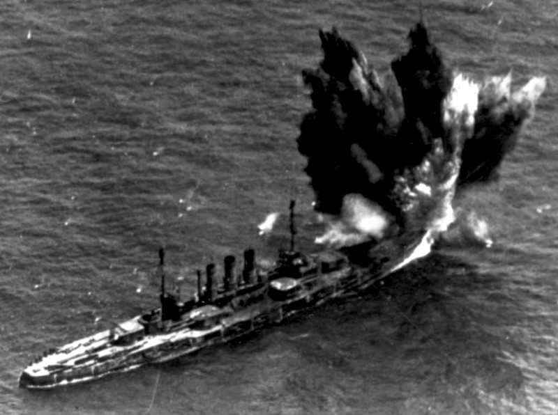 The former German battleship Ostfriesland during air attack trials