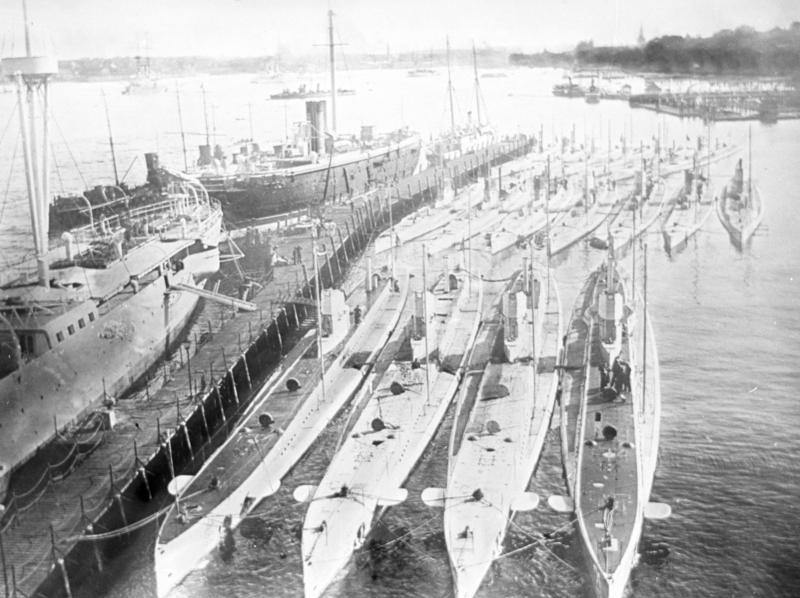 A flotilla of German U-boats during WWI