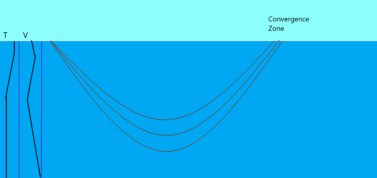 @Jim, my notes from the (unclassified) Undersea Warfare Short Course I did in 2022 say that Convergence Zones are mostly the result of pressure, not temperature. Really needs a depth of 1500 metres or more for a CZ to form.