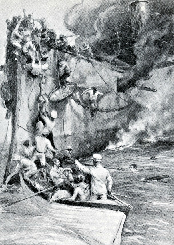 6 The best justification I can see for this is probably the rapid deaths of the other cruisers, as Colon was seriously outgunned by the three ships closing in on her and I suspect the morale of her crew was not particularly high. Sometimes, the line between cowardice and moral courage is thin indeed. ⇑