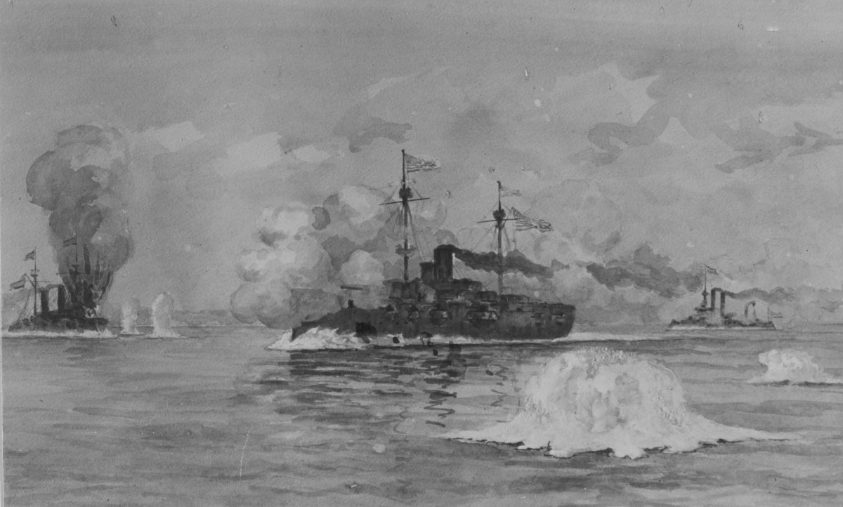 In 1898, tensions between the US and Spain over the remains of Spain's Caribbean empire boiled over after the battleship Maine blew up in Havana Harbor. The US declared war and blockaded Cuba, while the Asiatic Fleet under George Dewey destroyed the Spanish fleet in the Philippines at Manila Bay. The Spanish dispatched a fleet under Admiral Cervera to break the blockade, but it ended up trapped in Santiago on Cuba's south coast. The Americans landed troops and tightened their blockade, and on Sunday, July 3rd, Cervera finally sortied.
