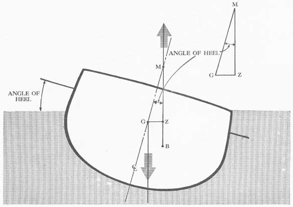 Metacentric height is measured in practice by a procedure known as inclining. The ship is carefully prepared4 and then weights are moved across the deck to give a known heeling moment. The ship's heel is measured. A few data points gathered in this way can be used to calculate GM.