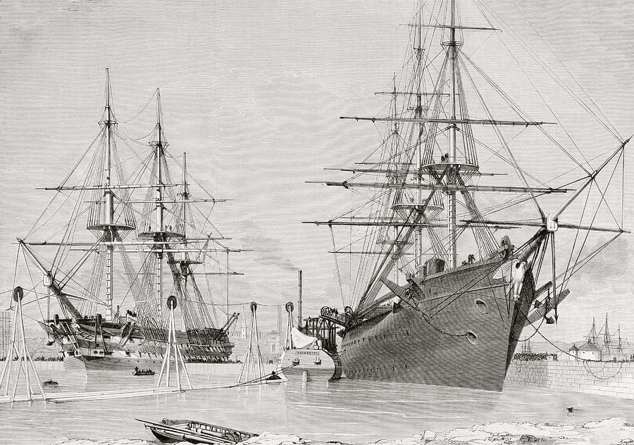 Agamemnon and Niagra taking aboard cable