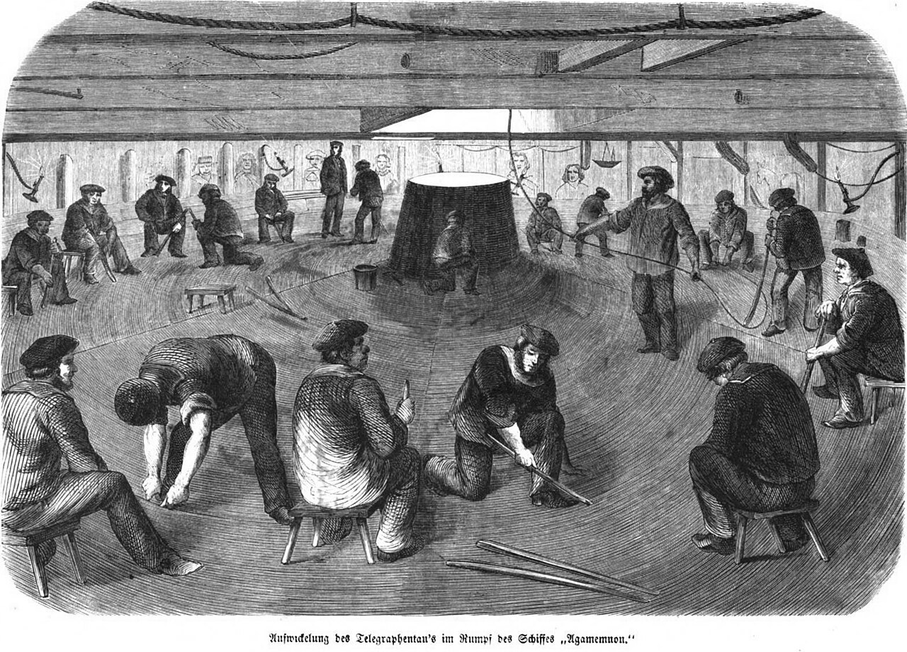 The second cable would have another major advantage over the first, in the form of an appropriate ship to lay it. Great Eastern had been the brainchild of renowned engineer Isambard Kingdom Brunel, who had decided that he would build a ship capable of going straight from Britain to Australia.1 Iron shipbuilding had made this possible, and the vessel that emerged was almost six times the tonnage2 of any other ship afloat, and would not be exceeded in size until the dawn of the 20th century. Brunel died in 1859, shortly after her maiden voyage, thus missing a very expensive lesson in why this sort of size jump is generally a bad idea. Great Eastern proved far too large to make money as a passenger liner, but she was perfect for laying cable. When she set sail in June 1865, all 7,000 tons of cable were aboard, saving the trouble of a splice in the mid-Atlantic.