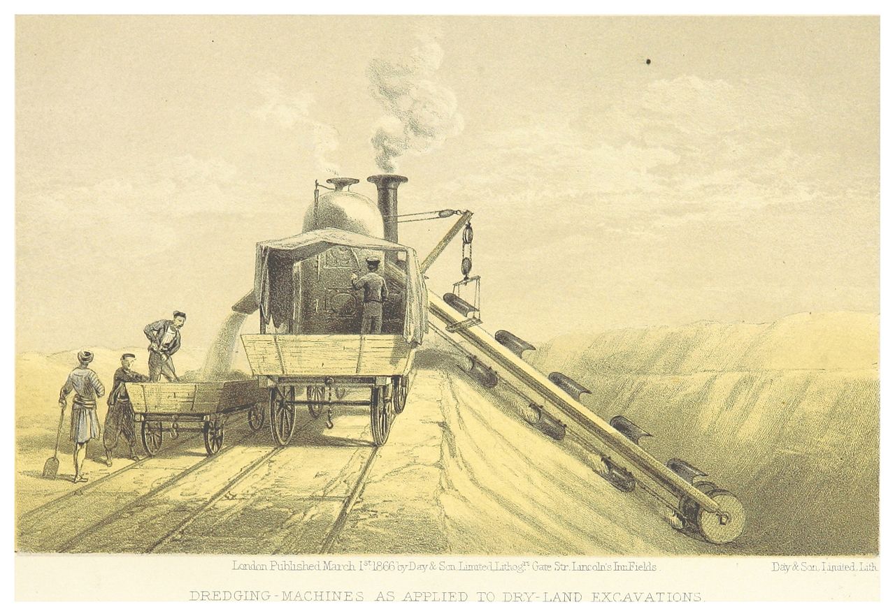 Despite the continued opposition of the British government, and the fact that it would take until early 1866 for the legal dust to settle, it was clear that the main obstacles remaining were simply those of digging a giant ditch between the seas. The loss of the corvee meant that the bulk of the work would need to be done by machines instead of by hand, and de Lesseps turned to French engineers to design and build the 300 or so mechanical shovels and dredgers of a dozen varieties required to remove the various types of rock and soil along the canal route. Mechanical excavation was still in its infancy, and many of the machines needed to be extensively redesigned before they worked reliably. But these problems, and ones involving bad assumptions about the soil under the route,1 were overcome. The majority of the 74 million cubic meters of earth involved in the construction project were excavated between 1867 and 1869, when construction was finally completed.