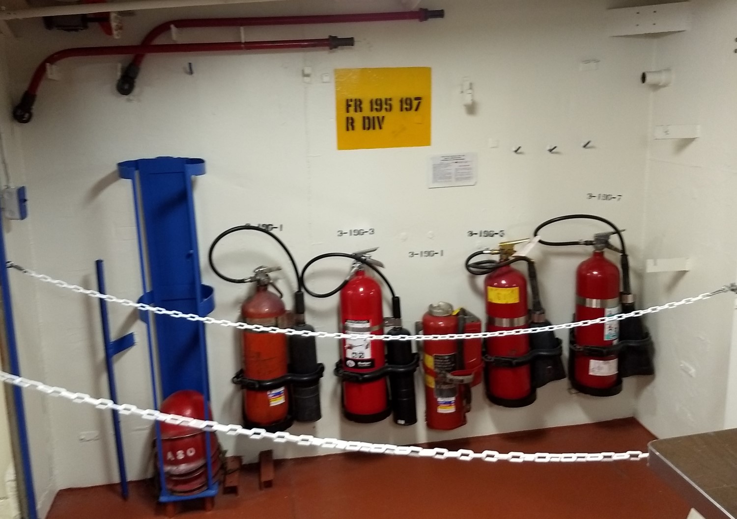 The first step in this process was to reduce as far as possible the amount of combustible material onboard. During WWII, it was found that many fittings installed in peacetime to make life more comfortable were dangerous in action. Cork insulation, upholstered furniture, linoleum, and clothing not stored in metal lockers all fed fires that ultimately led to loss of life and ships, most notably in the battles off Guadalcanal. These were all ruthlessly stripped from ships, and those flammables that could not be removed were either limited or packaged in such a way as to reduce the risk.1