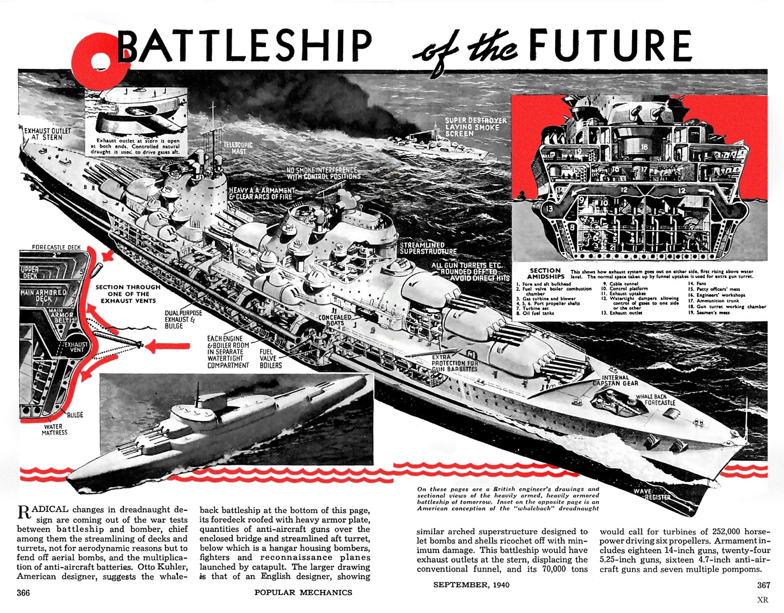 I recently ran across the following spread from a 1940 edition of Popular Mechanics. It's an interesting study in the way that outsiders get warship design very, very wrong.