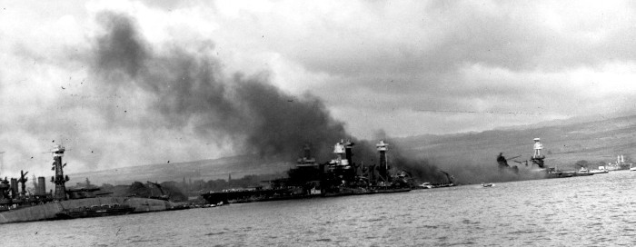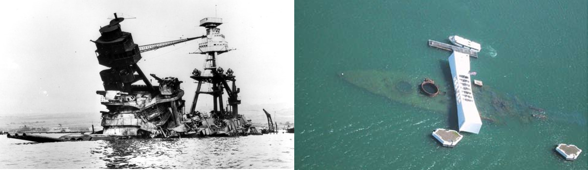 Battleship Row, Dec 8, 1941 (L-R: Maryland, Oklahoma, Tennessee, West Virginia, Arizona)
