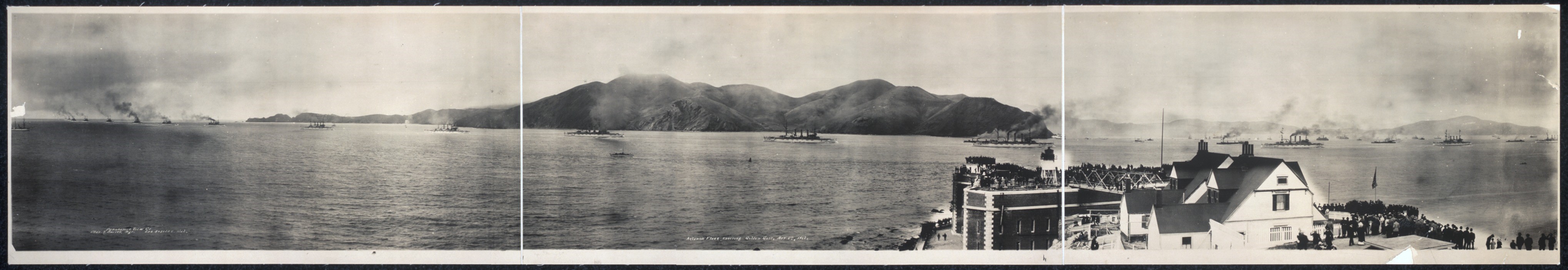 The Atlantic Fleet entering the Golden Gate (click to zoom)