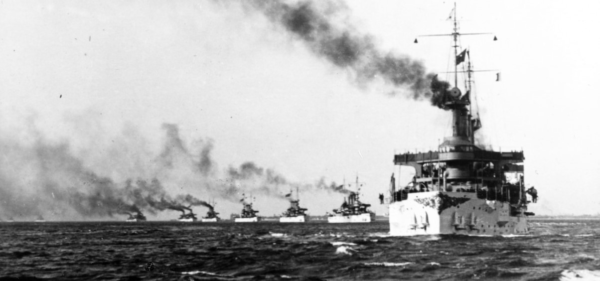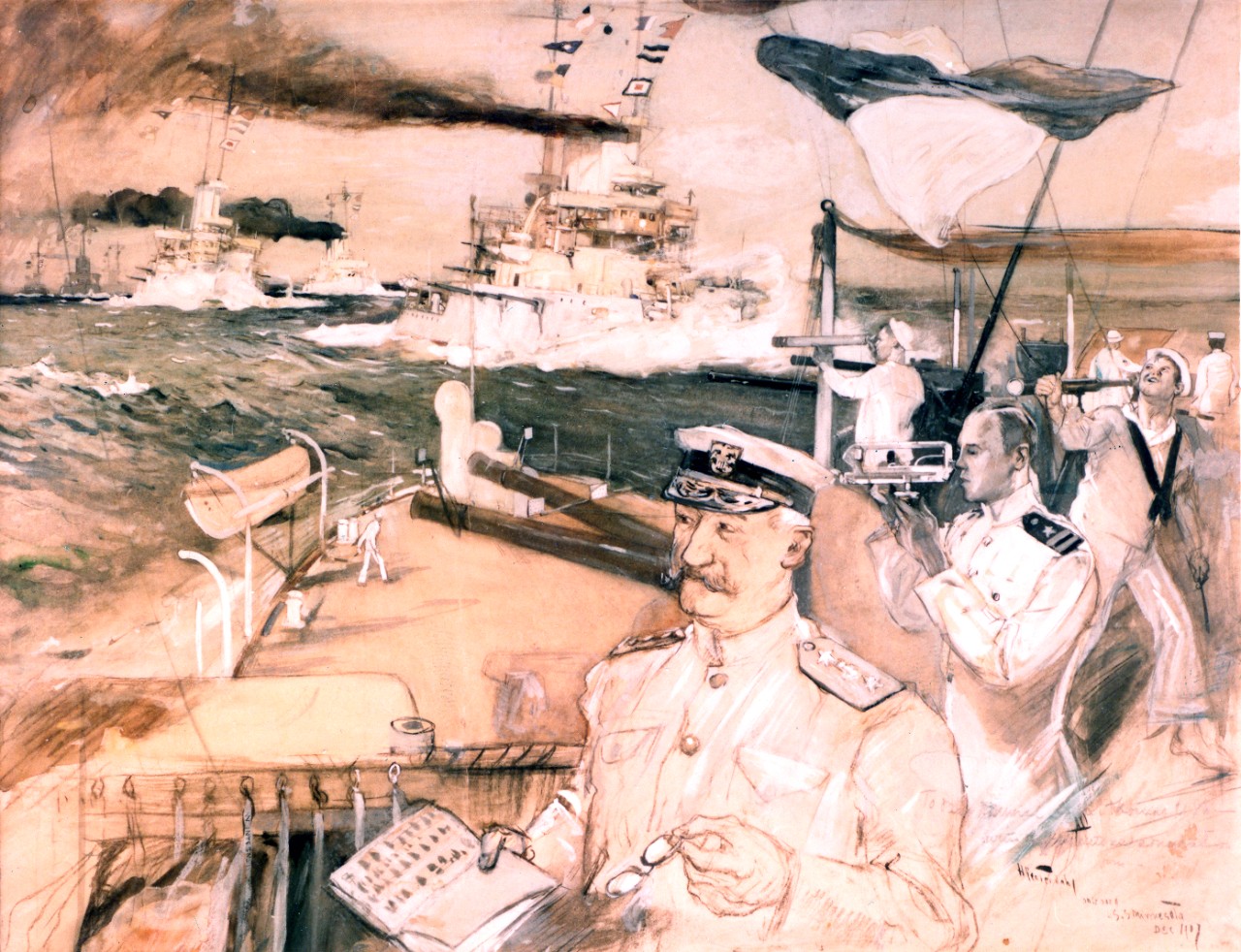 The Great White Fleet at sea, painted by Henry Reuterdahl