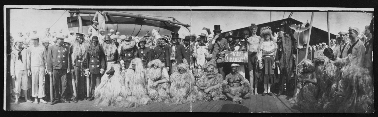 The next leg of the journey, to Rio de Janerio, was the longest of the trip around the Americas, at almost 3,400 nautical miles. Part of the way through the 15-day trip, it became apparent that some of the ships were going to run out of coal before Rio unless conservation measures were taken. The fleet slowed, and station-keeping requirements were relaxed. A highlight of this leg was the line-crossing ceremony, where sailors who had never crossed the equator were initiated into King Neptune's domains in a ritual that bore more than a passing resemblance to a fraternity initiation.